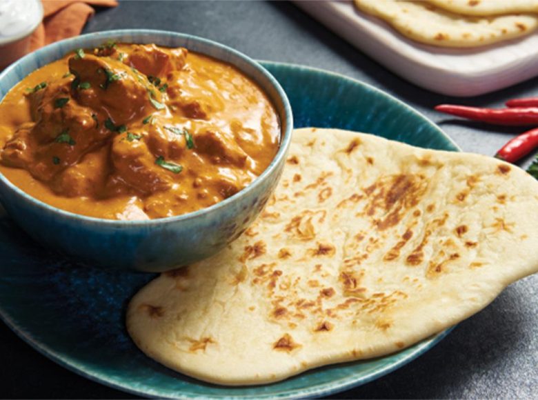 A rich, creamy delight of spiced chicken, perfectly paired with soft, fresh naan.